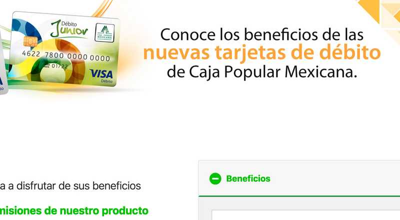La tarjeta de débito JR de Caja Popular Mexicana es un instrumento ideal para los jóvenes mexicanos comprendidos entre 12 y hasta 17 años, 6 meses de edad cumplidos, donde contarán con instrumento financiero respaldado pos Visa.